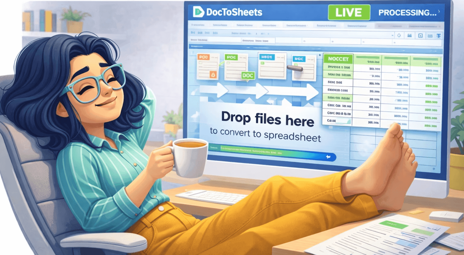 From PDFs and Word docs to live spreadsheet rows in three steps.